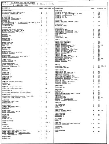 Often with a 35 m high canopy, this forest (fig.8, localities 30, 32, 38) contained several large emergent tree species e.g. Dracontomelon dao, Swintonia foxworthyi, Atuna racemosa, Diospyros sp., Dysoxylon sp., Horfieldia irya, Nauclea sp. and Pometia pinnata on alluvial soils with Syzygium alcinae, S. sp. 29 and Pometia pinnata on the karst edges. Thirty three other tree species were collected (table 12).